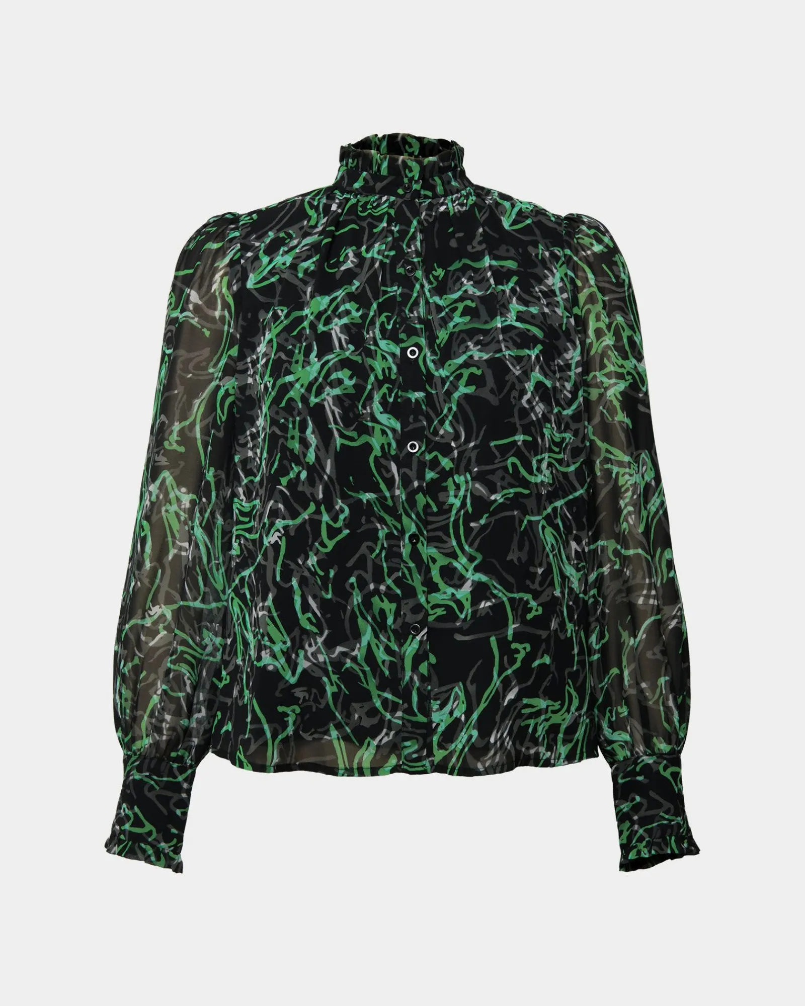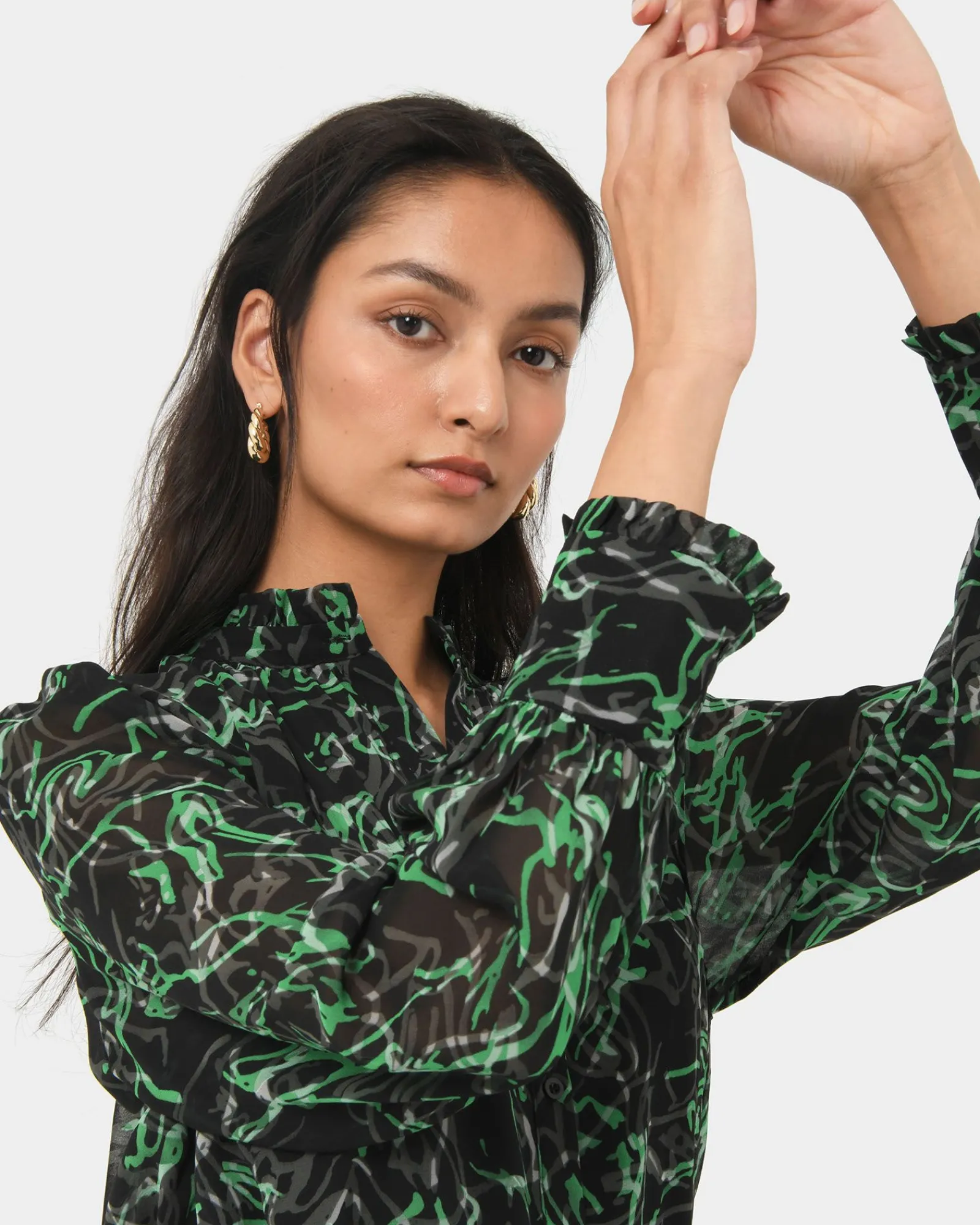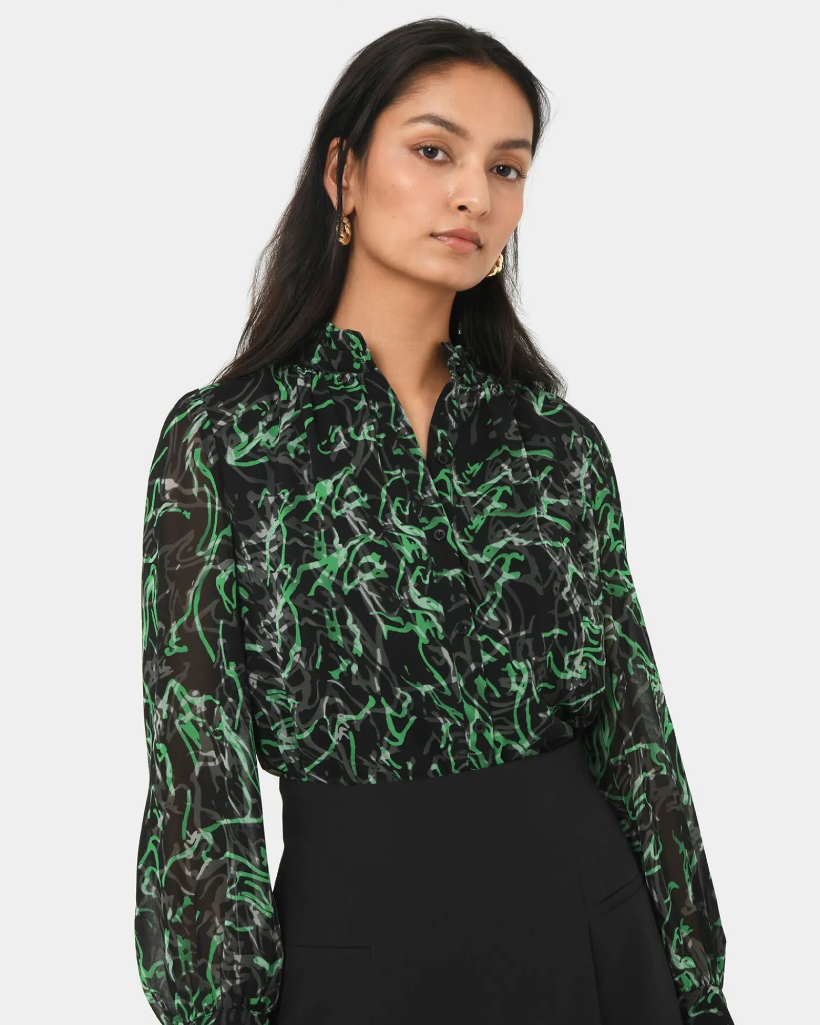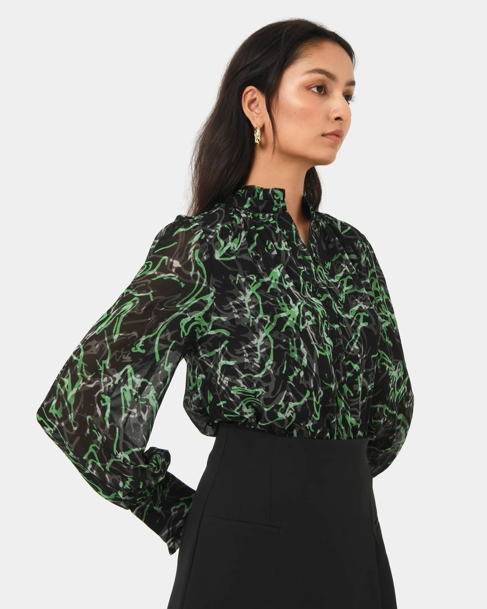 Turn heads and create a bold fashion statement with the Veda Collar Blouse. Featuring a striking abstract print, it is a standout piece for any occasion.